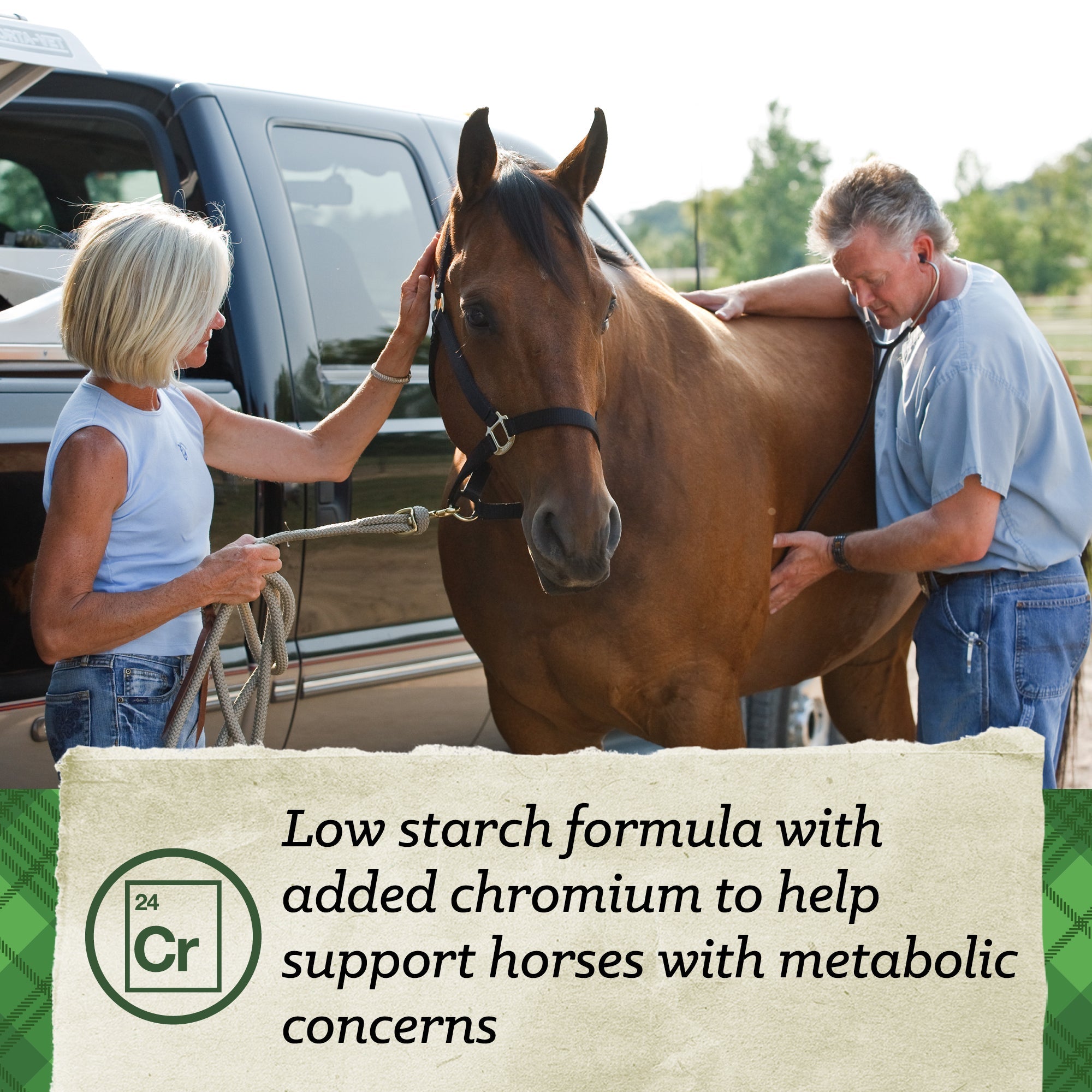 SafeChoice® Special Care is a controlled low starch formula for easy keepers, metabolic concerns, ponies and miniature horses that is nutritionally balanced with only 10% NSC, no added corn, corn co-products or molasses, Chromium to support metabolic issues, Topline Balance® to support topline health and muscle, Nutri-Bloom Advantage® for easier nutrient absorption, and Digestive Shield™ for complete gut and immune health. You can trust SafeChoice Special Care to provide whole horse nutrition, even to your metabolic horses.