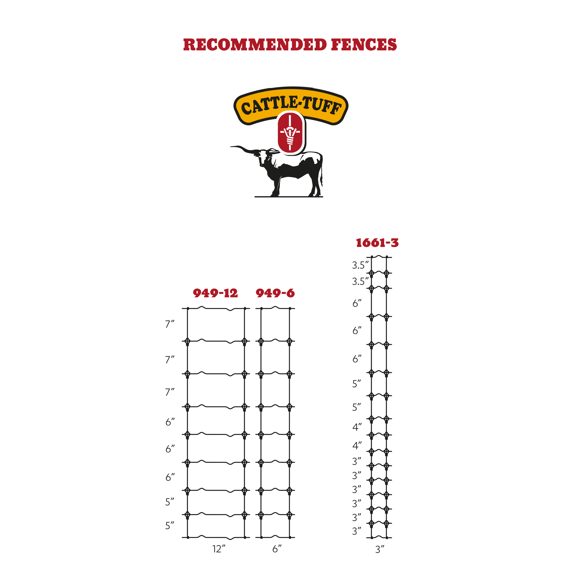 | 1661-3 | Corrals, high pressure areas. | Higher fence, 3" spacing for maximum strength and animal control. |
