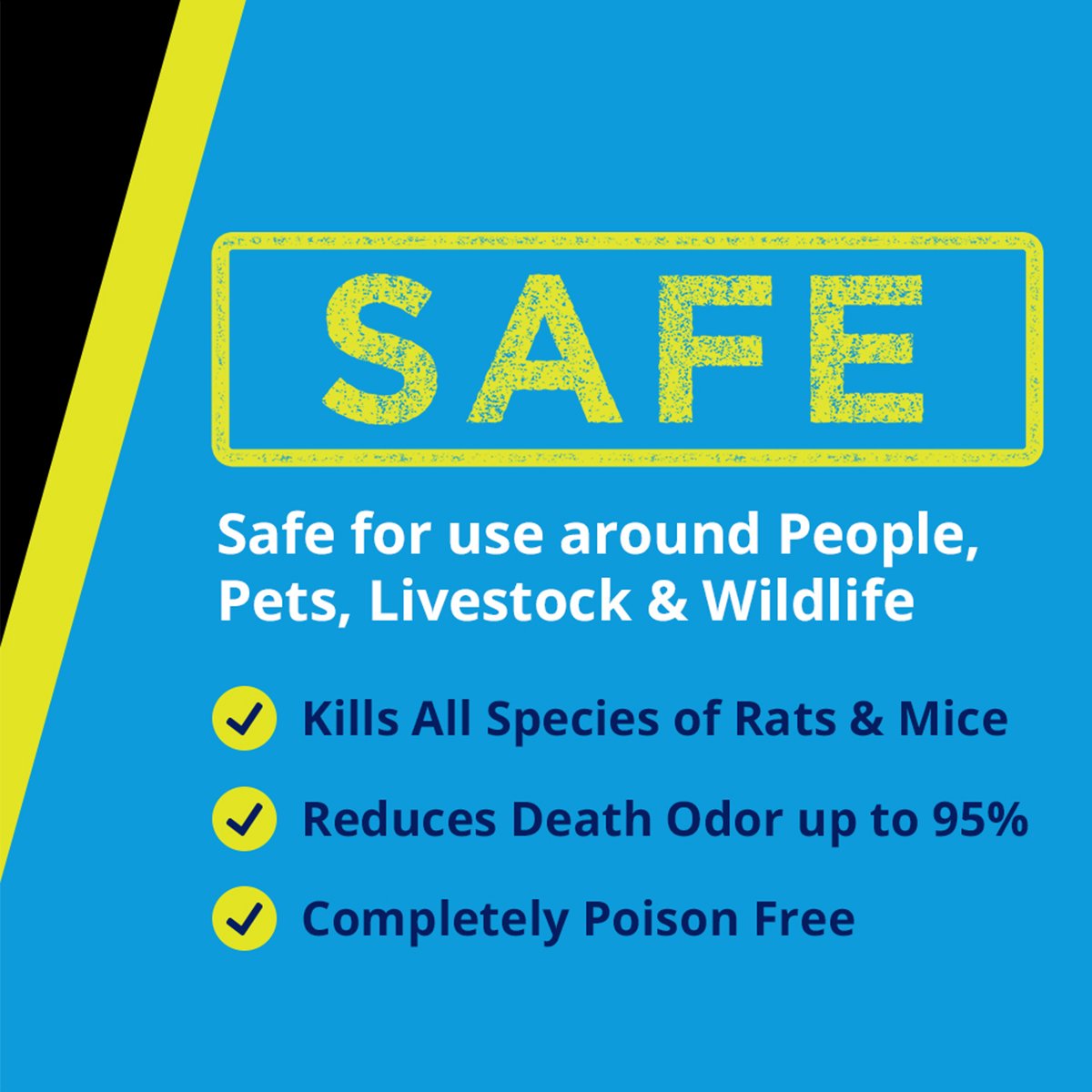 Aside from its overall efficacy and humane rodent-killing process, RatX® pellets are non-toxic and 100% safe for use around people, pets, livestock and wildlife. RatX® is even safe to use around birds of prey, with no risk of secondary kill.