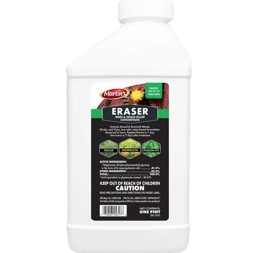 Concentrated for extra value. Low odor water-based formulation. Rainproof in hours. Kills unwanted vegetation - existing weeds only. Replant flowers in one day, new lawns in 7 days after treatment. One quart makes up to 21 gallons.