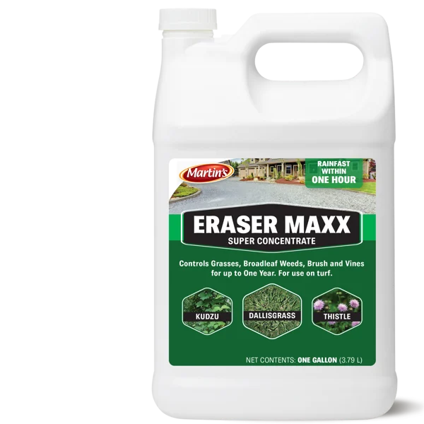Eraser Maxx Super Concentrated Herbicide is ideal for controlling grass, broadleaf weeds, brush and vines. It’s fast acting and kills weeds up to one year from just one application. Use as total vegetation control or as a spot treatment for all season-long control.