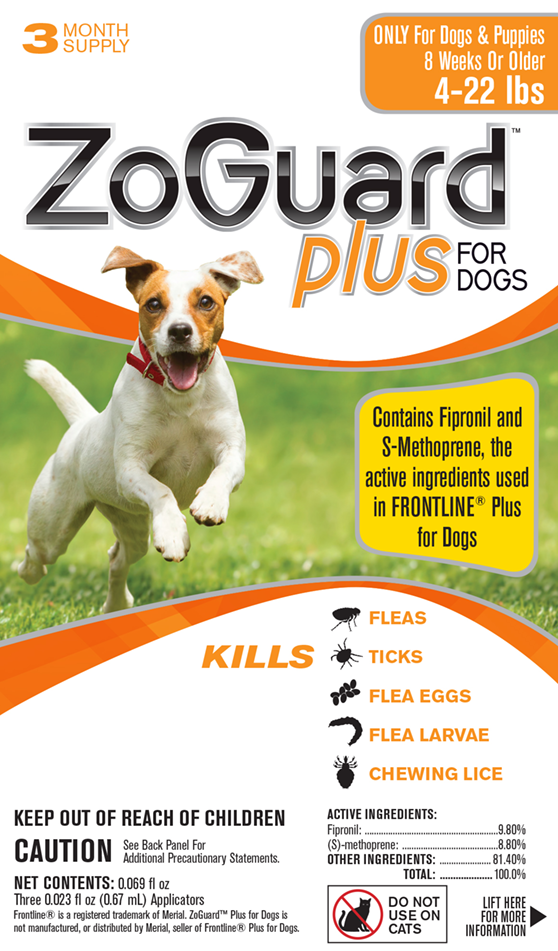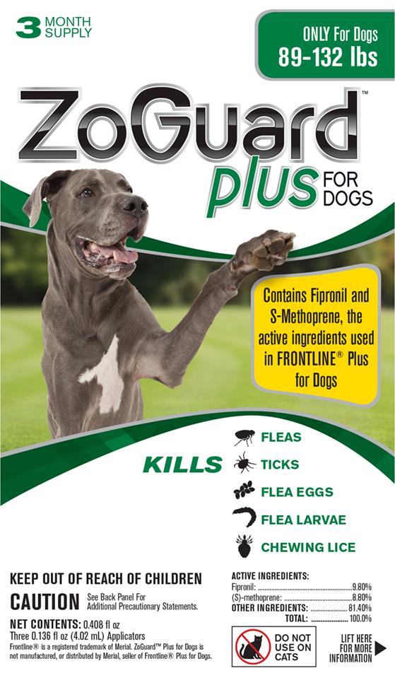 Dual action active ingredients kill fleas, ticks and lice to keep your dog enjoying the outdoors without worrying about the pests. Fipronil with (S)-methoprene Effectively Breaks the Flea Life Cycle.