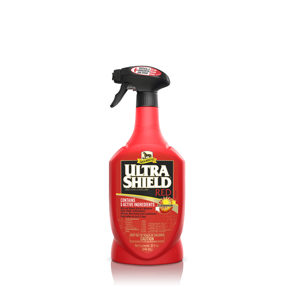 Featuring a unique combination of five active ingredients, UltraShield® Red equine fly spray shields your horse from the torment of bugs. This multi active formula with five proven ingredients offers broad-spectrum control for killing nuisance and biting flies, mosquitoes, and ticks.