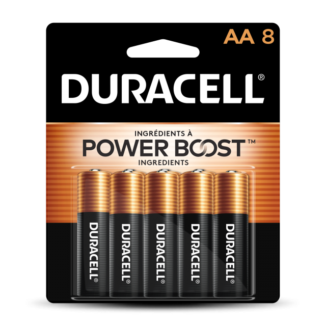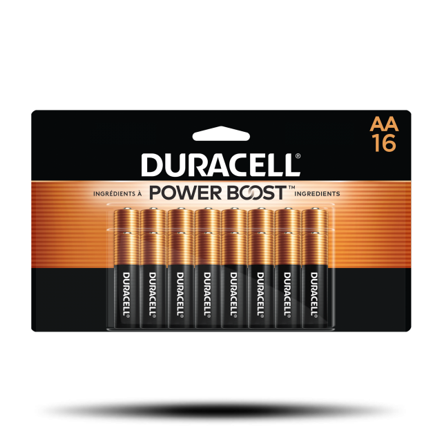 Duracell Coppertop AA alkaline batteries contain Duracell’s patented POWER BOOST™ Ingredients which deliver lasting performance in your devices.