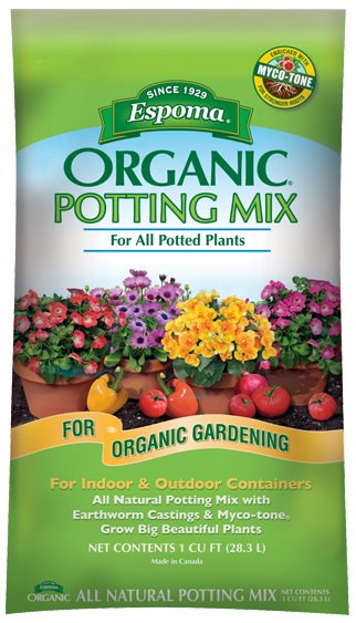 - Add the appropriate amount of Espoma Organic Bio-tone Starter Plus, and mix thoroughly with the potting mix.