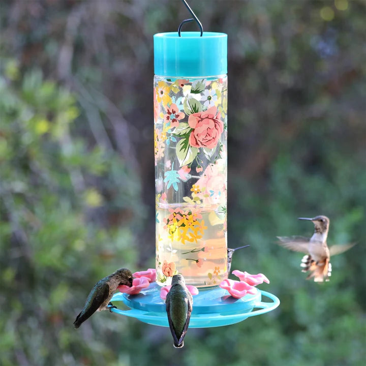 Nature's Way Bird Products Charming Peony Decorative Glass Hummingbird Feeder