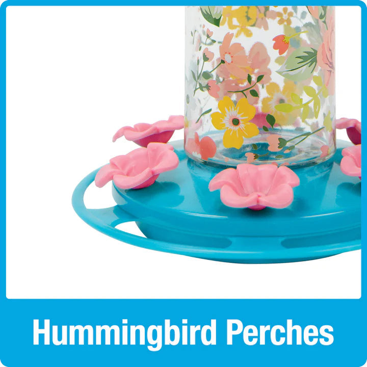 Bring more blooms to your yard with this decorative floral glass hummingbird feeder!